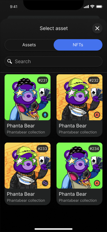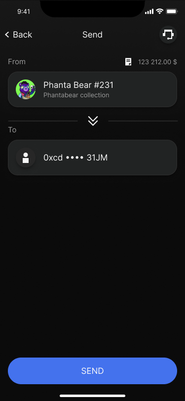 1. Navigate to the Portfolio tab and tap on the Send button.