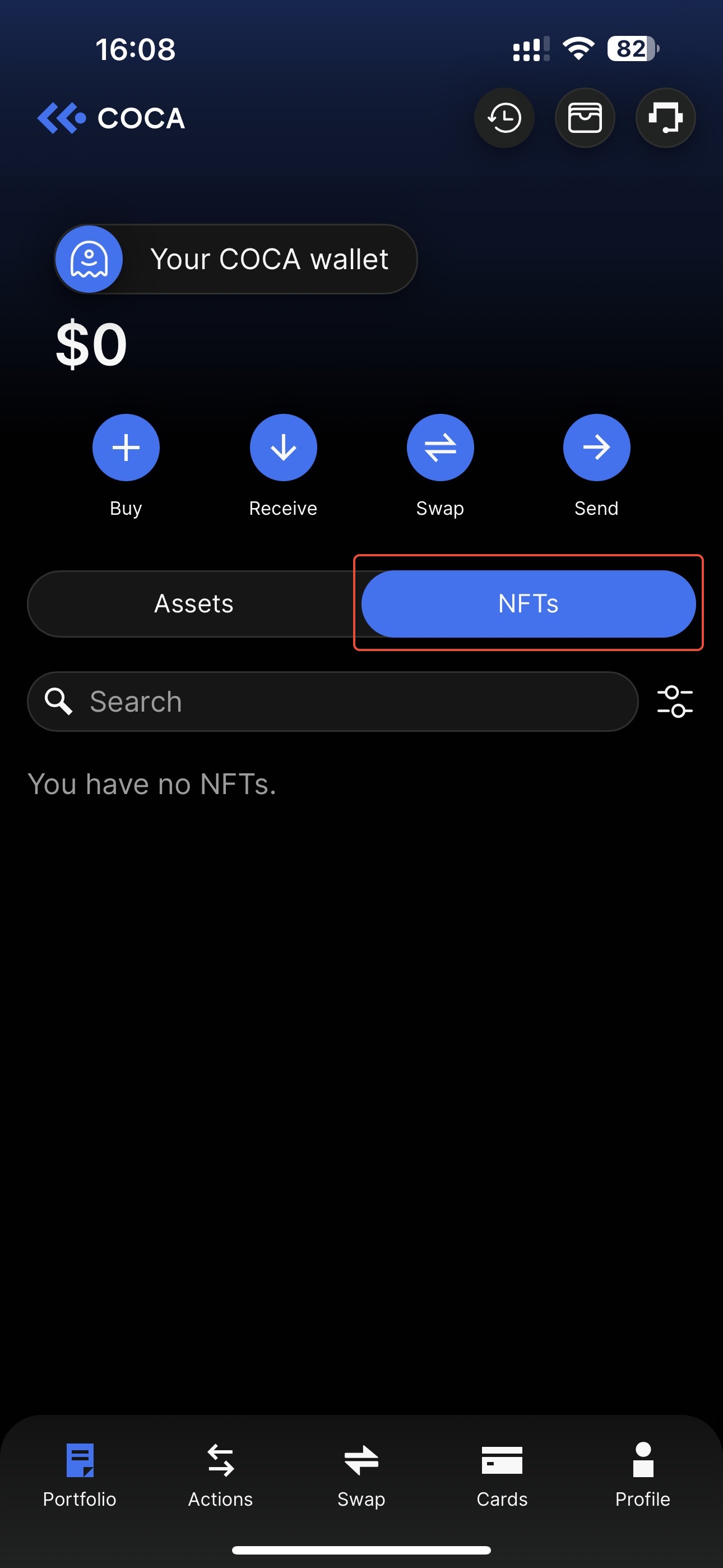 1. Open the COCA Wallet app and navigate to the Portfolio tab.