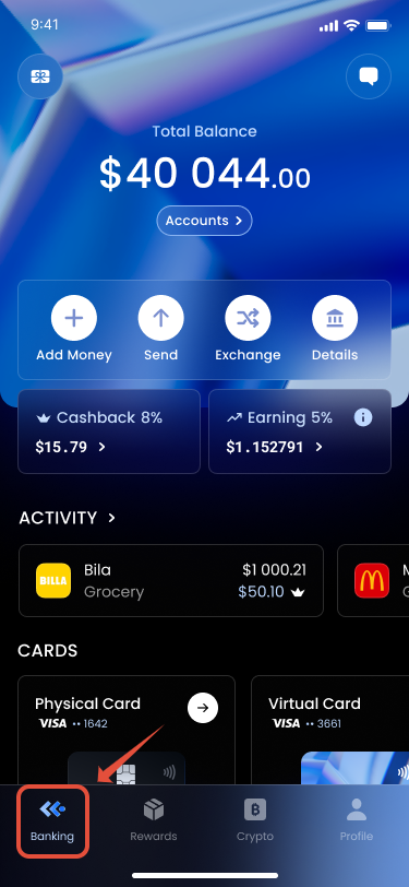 1. Open Banking tab.