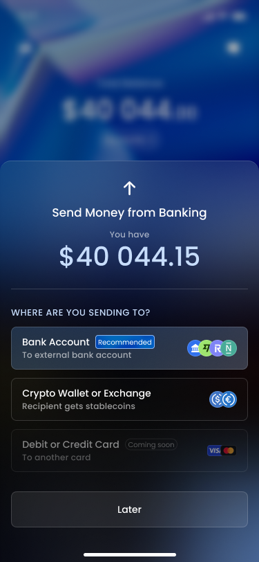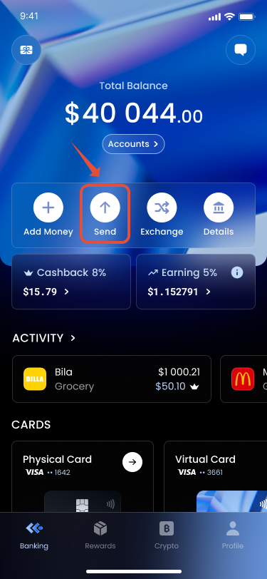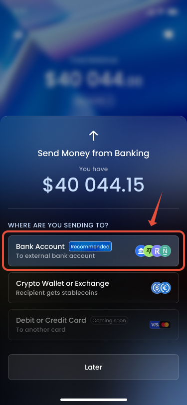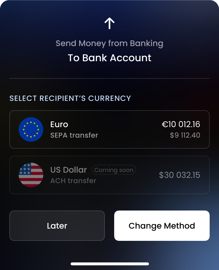 This option allows you to transfer funds directly from your Banking wallet to an external crypto address. Here’s how to do it: